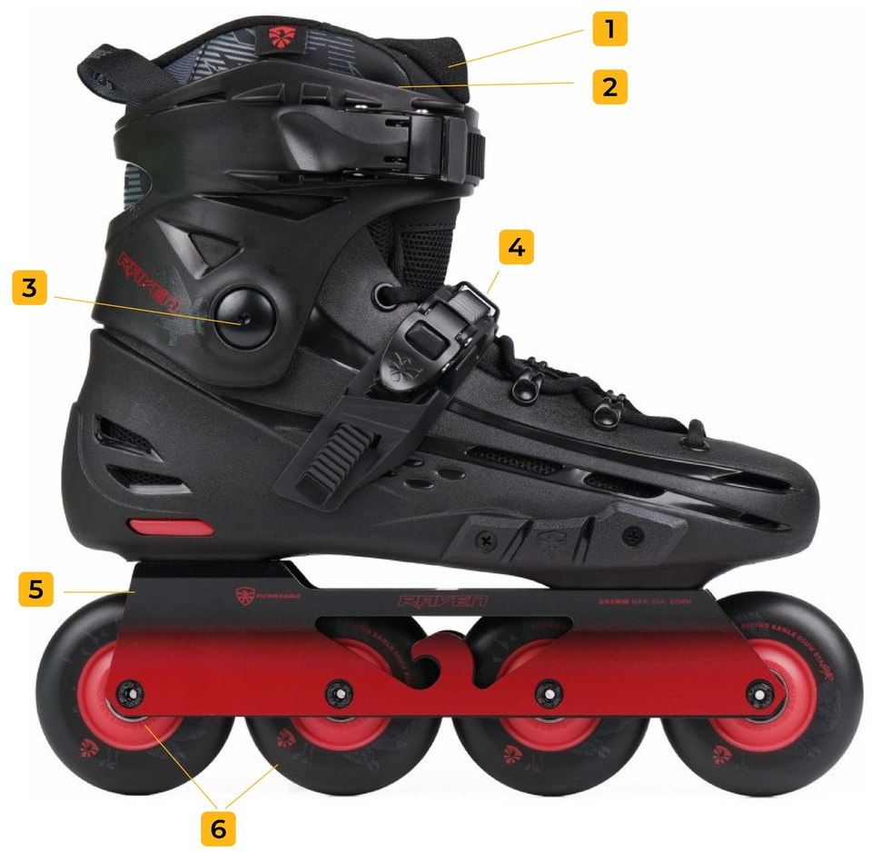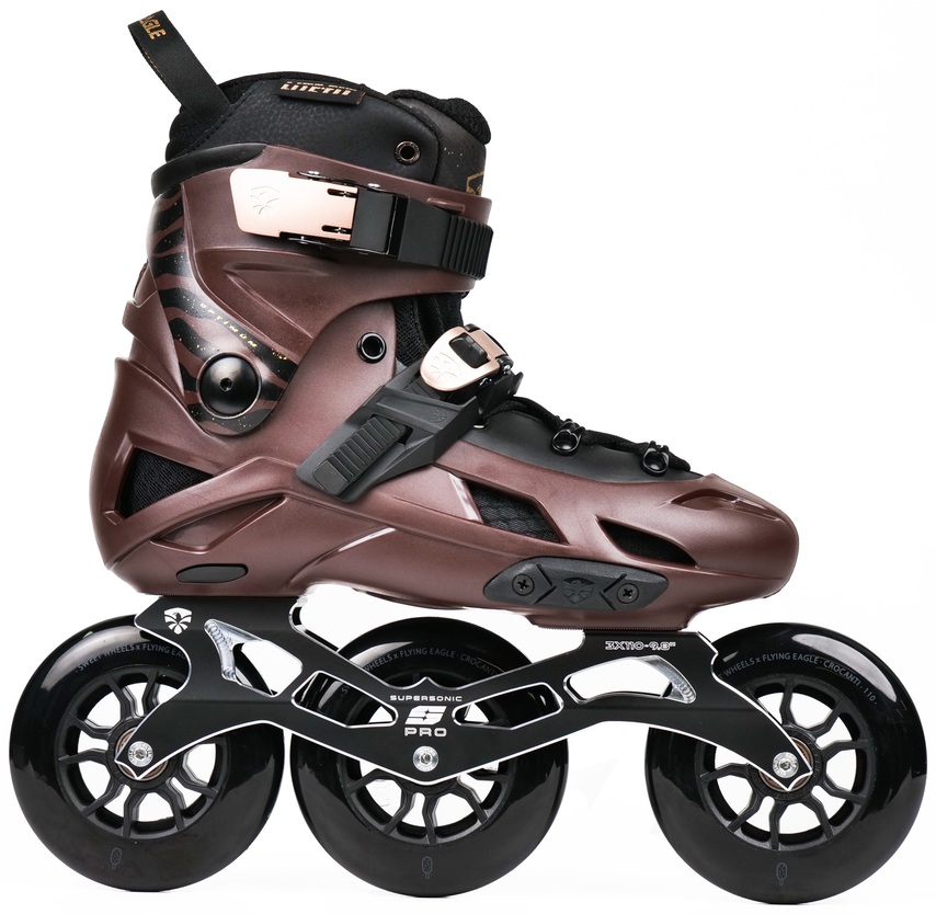 - Profesjonalne. Mają zintegrowany but wewnętrzny (czyli wewnętrzna część buta nie jest wyjmowana), co zapewnia lepszą stabilizację, ale nie są konieczne dla początkujących i średniozaawansowanych użytkowników. Nie ma sensu szczegółowo analizować konstrukcji profesjonalnych rolek, na przykład takich jak Flying Eagle Raptor. Zwykły “user” i tak nie zrozumie wszystkich ich technicznych niuansów.
