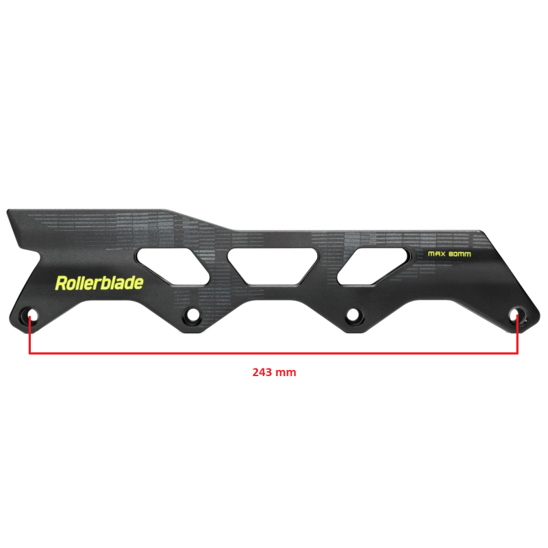 Aby prawidłowo dobrać rozmiar płóz, należy sprawdzić długość szyny. Trzeba zmierzyć od środka pierwszej osi do środka ostatniej osi (jak pokazano na drugim zdjęciu). Najczęściej długość szyny w rolkach wynosi: 231, 243, 260 mm.